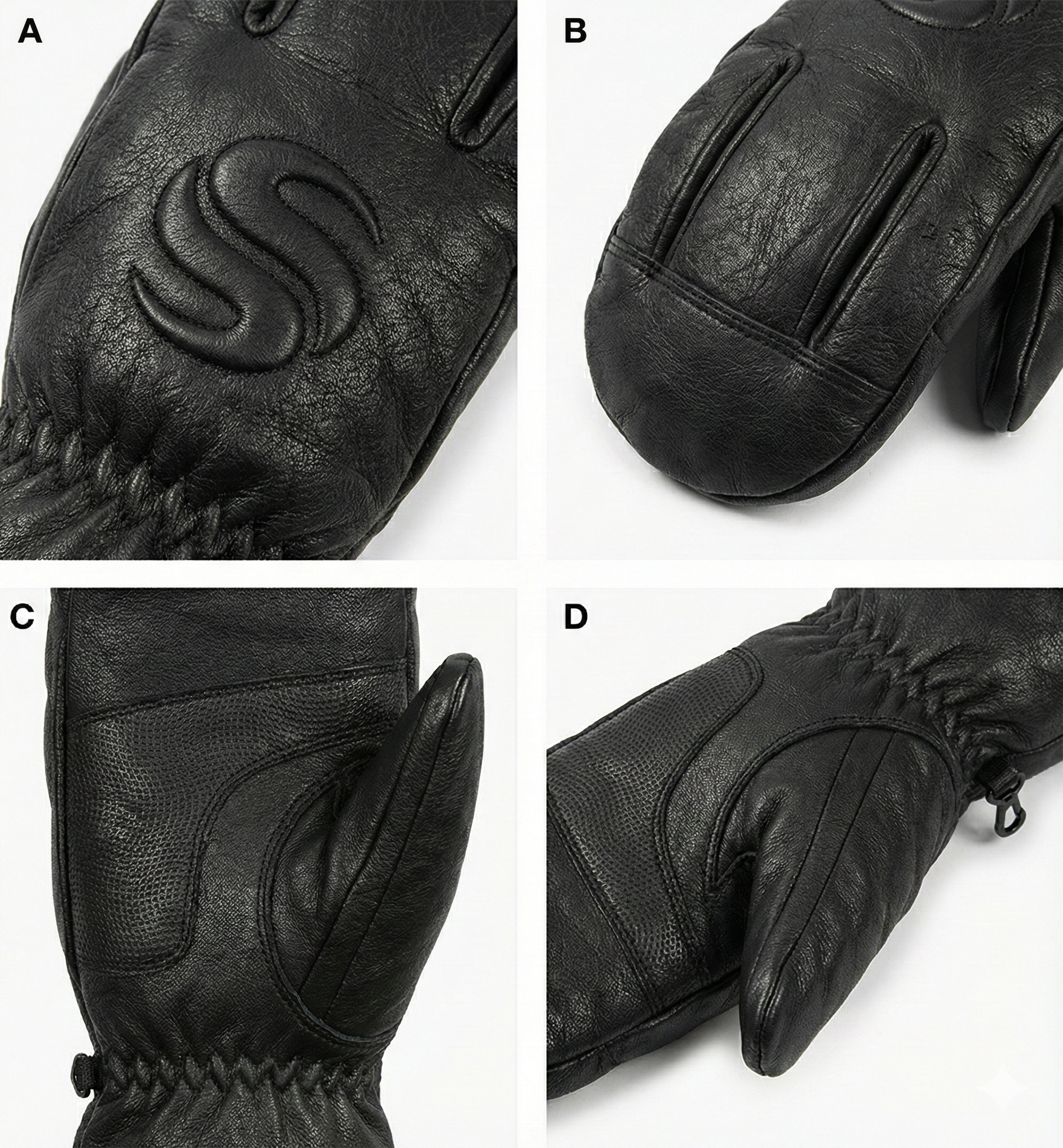 Weather Protection: The gathered elastic wrist ensures a snug fit, preventing snow, ice, and cold air from entering the glove.