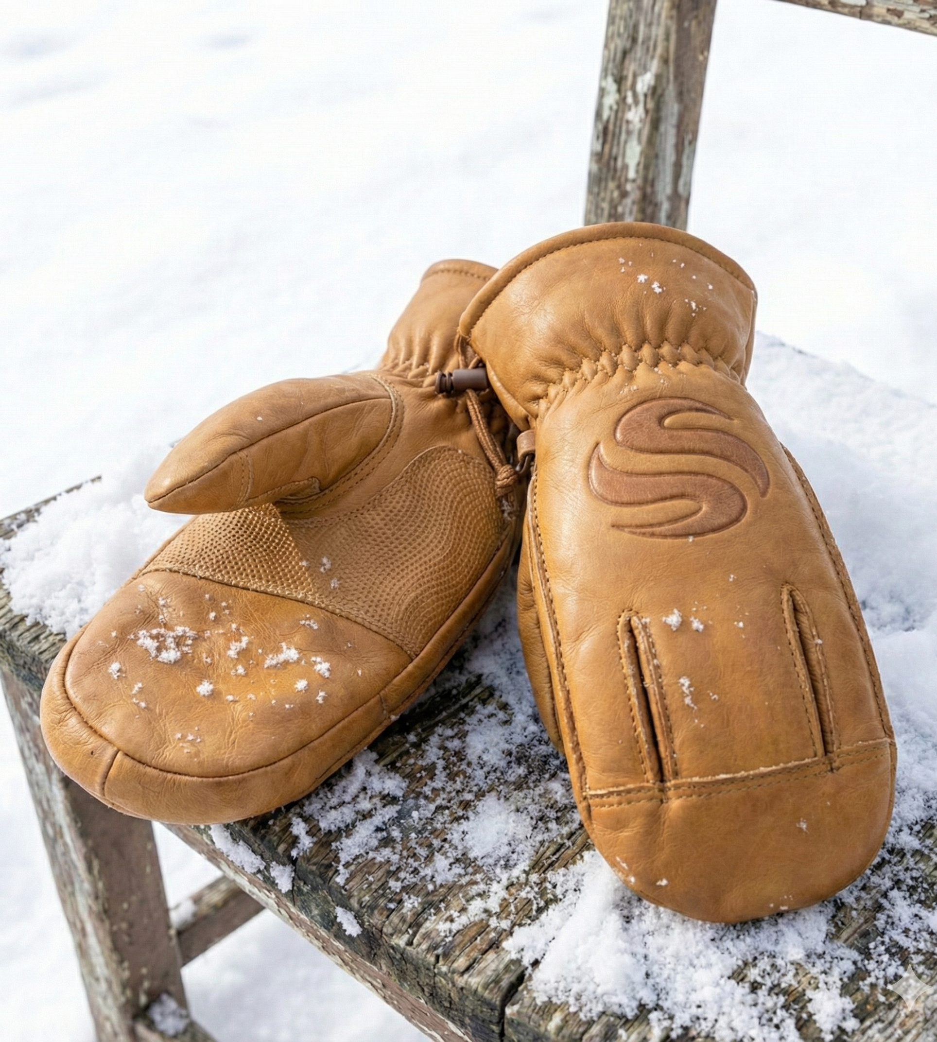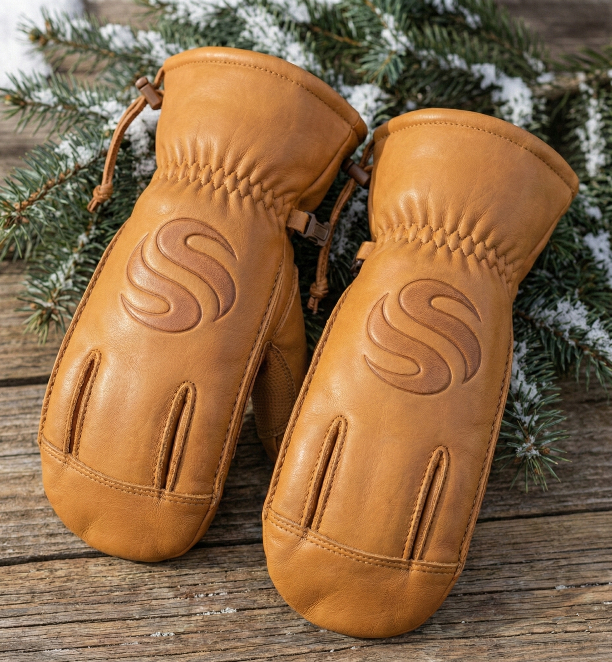Premium Tan Leather Winter Mittens – Thermal Insulated Ski & Snow Gloves with Reinforced Grip