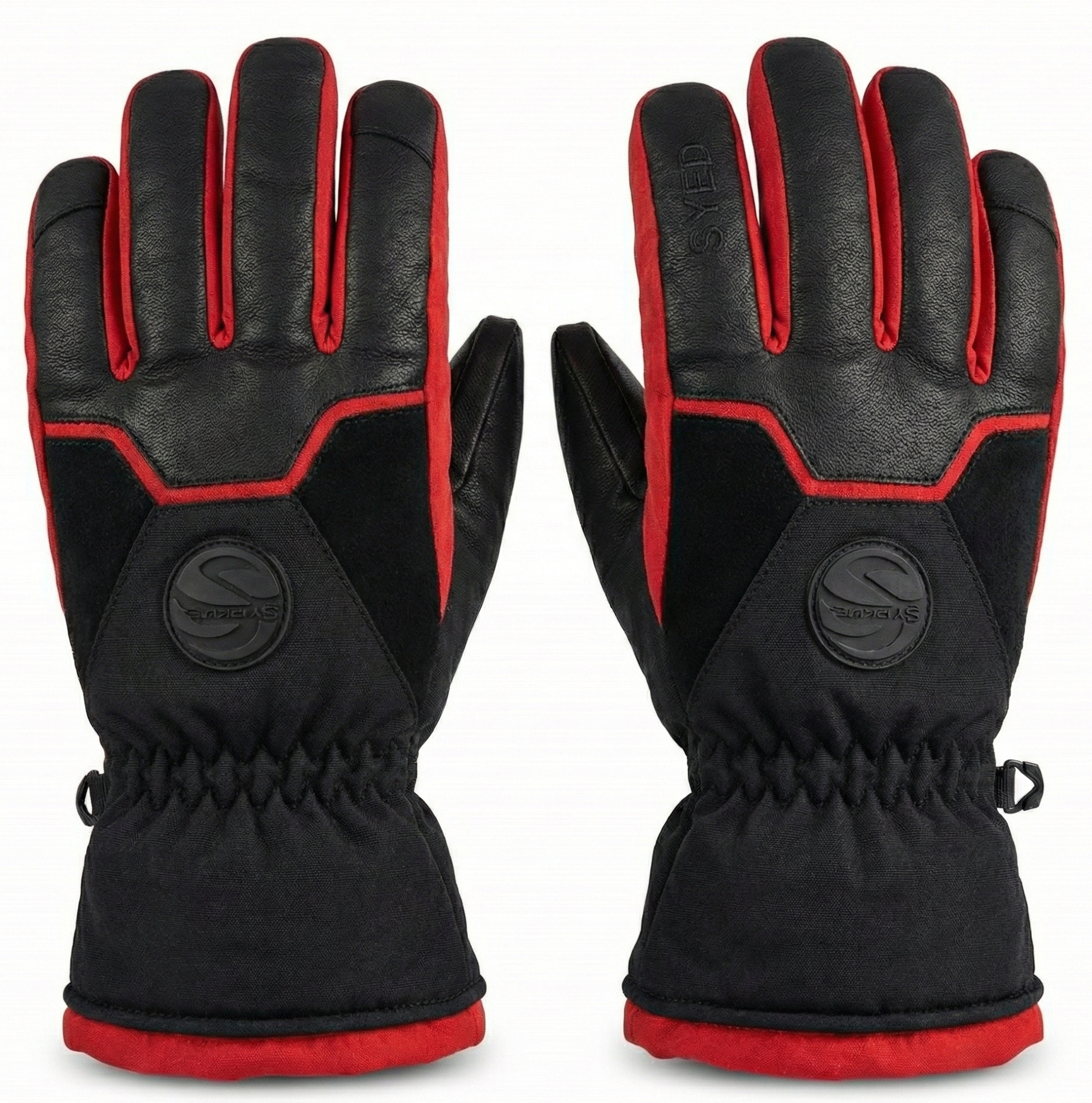 Pro-Performance Black & Red Leather Ski Gloves – Thermal Winter Sports Hand Wear